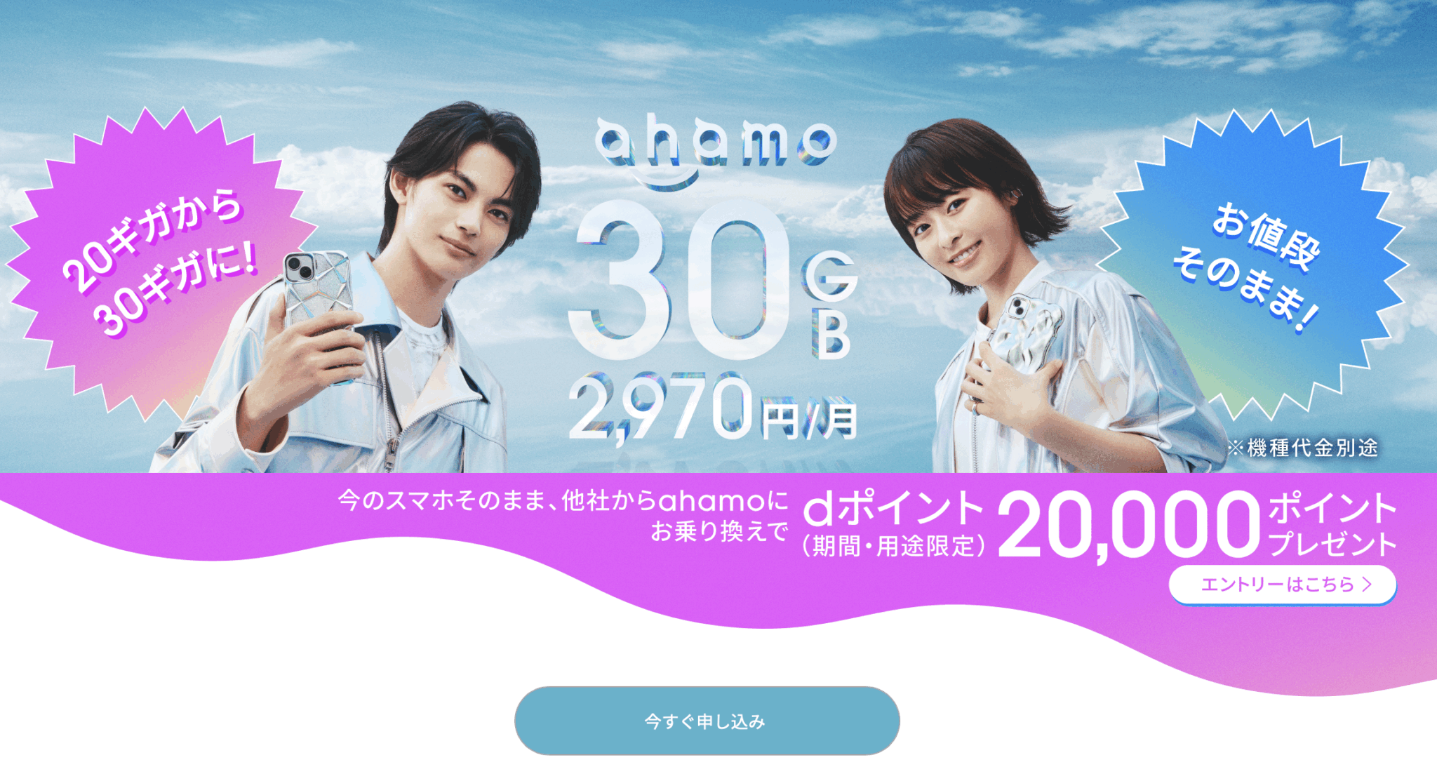 ここまでの解説でahamoが向いていると感じた方には乗り換えをおすすめしますが、キャンペーンの実施状況について気になる方も多いはず。現在ahamoでは、期間限定でお得なキャンペーンを実施しています。ahamoの契約を検討中の方は見逃さないように注意しましょう。