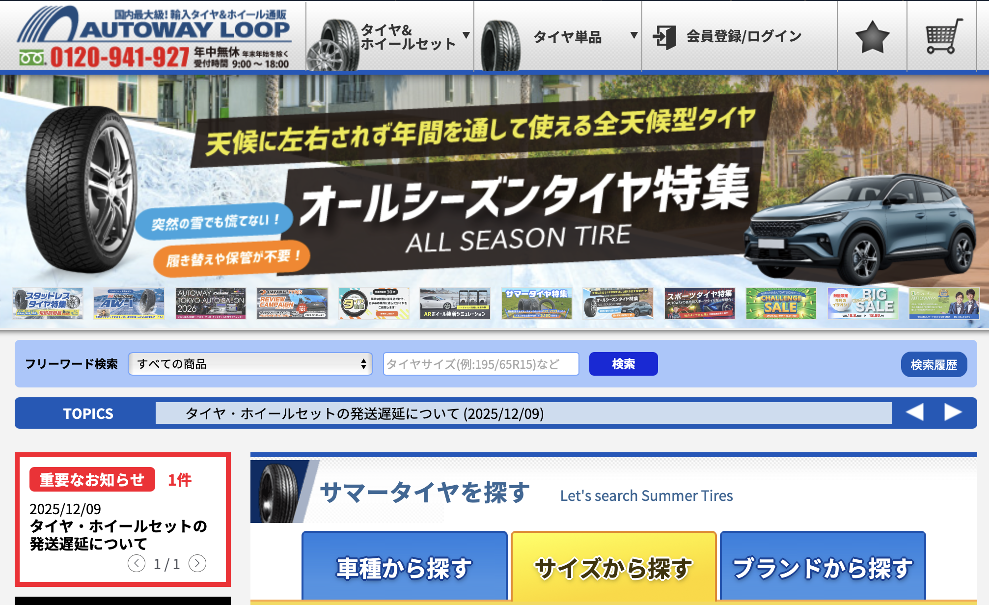 オートウェイは、とにかく価格競争力が強いオンライン中心のタイヤ専門店であり、ネット通販市場ではトップクラスの存在です。