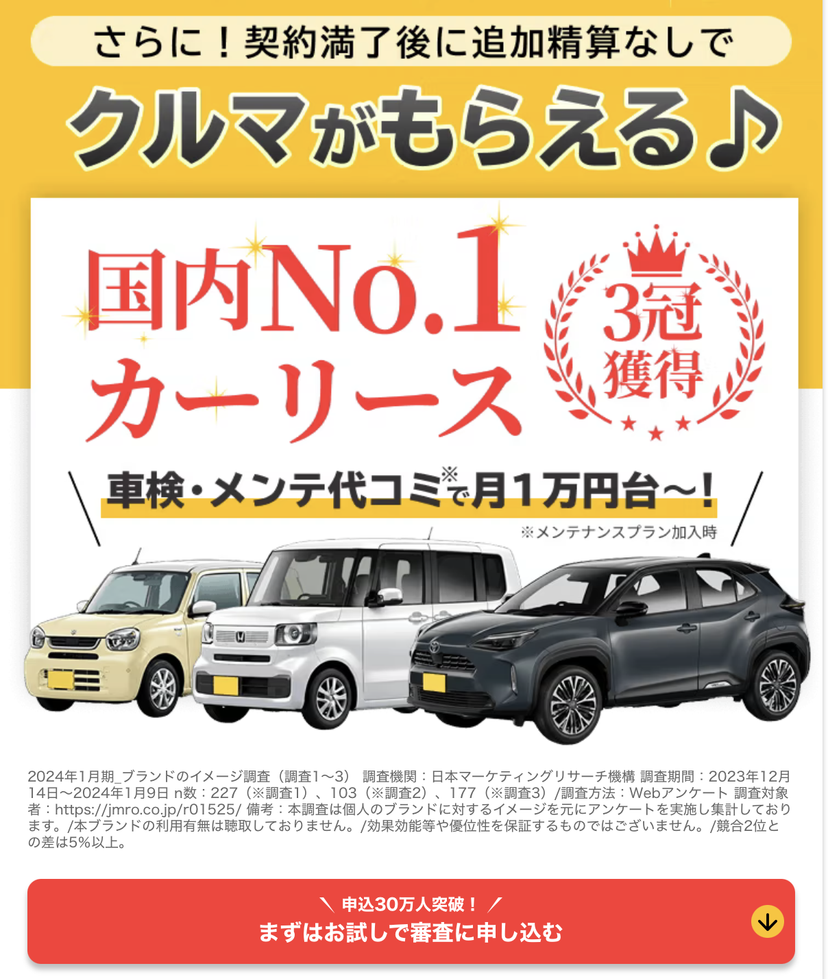 こうした人にとって、カルモくんは最適なカーリースサービスといえる。