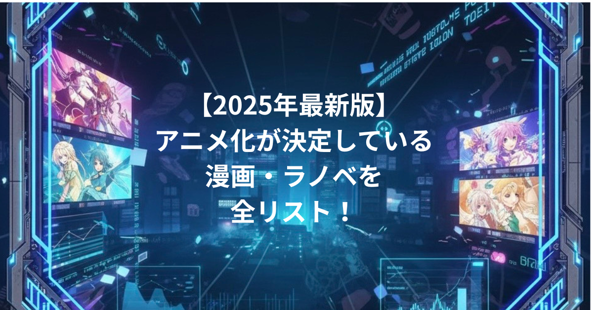 本記事では、2025年にアニメ化が決定している主要な漫画・ラノベ作品を、ジャンル別、VOD配信予想とともに全リスト化して紹介します。